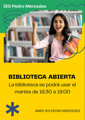 - Cada martes, de 16:30 a 19:00, abrirá la biblioteca del centro para su uso por cualquier miembro de la comunidad educativa.